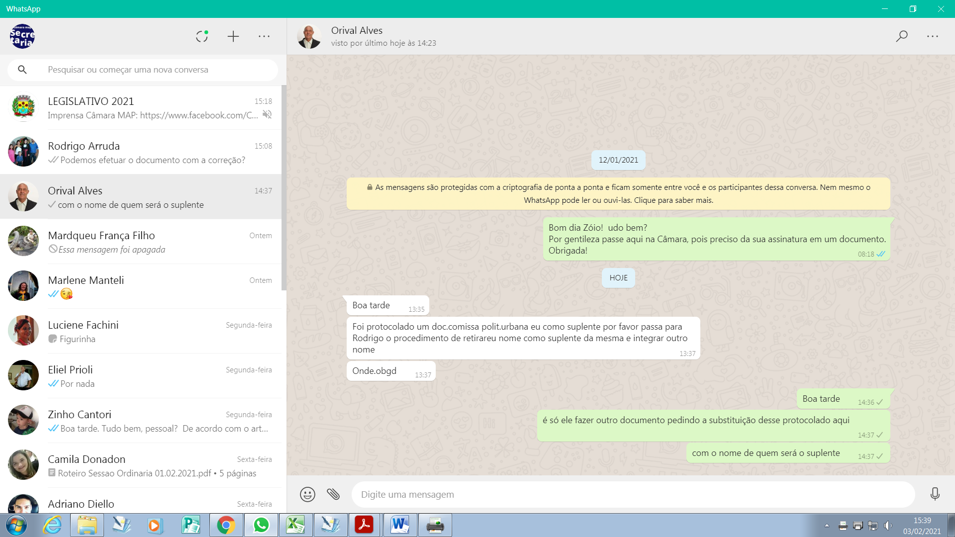 Assunto: SUBSTITUI O DOCUMENTO PROTOCOLIZADO SOB O Nº 1467 E REINDICA OS VEREADORES PARA OS CARGOS EM VACÂNCIA NAS COMISSÕES PERMANENTES PARA O BIÊNIO 2021/2022.