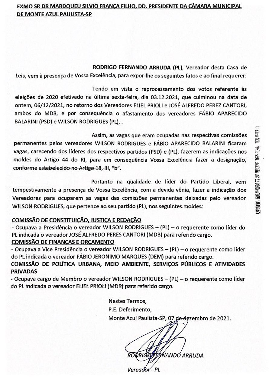 Assunto: INDICA VEREADORES SUBSTITUTOS PARA OS CARGOS NAS COMISSÕES PERMANENTES EM QUE O VEREADOR WILSON RODRIGUES ATUAVA.